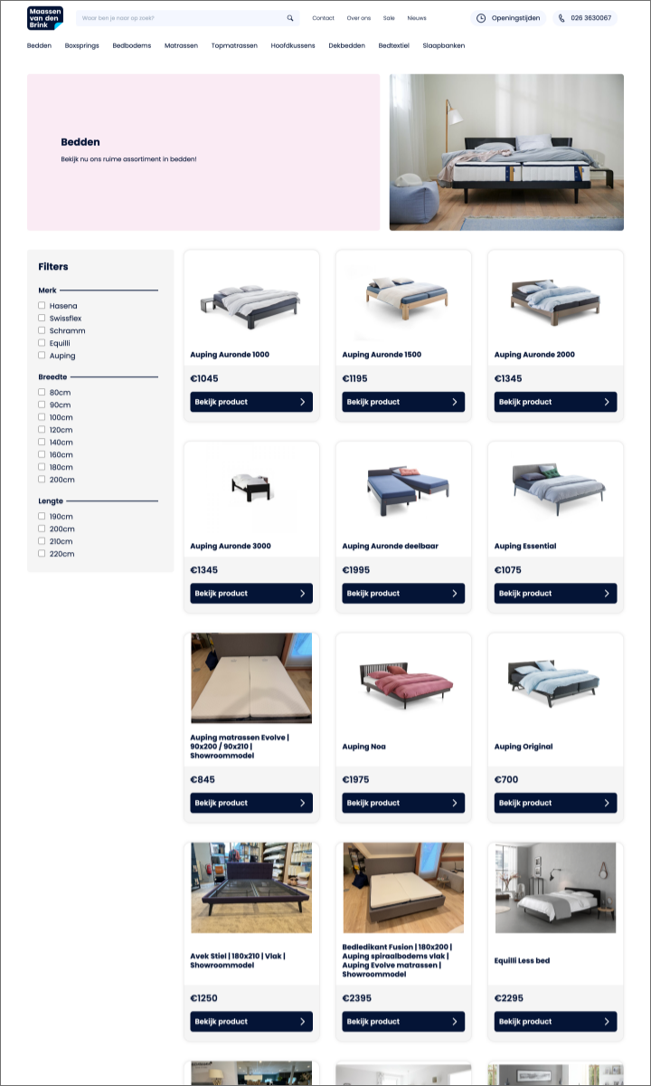 Het belangrijkste doel was het inzichtelijk maken van de productencatalogus van Maassen van den Brink. Dit hebben we gedaan met behulp van WooCommerce, ondanks dat de website geen shop is. Daar is op deze manier in de toekomst wel mogelijkheid voor.