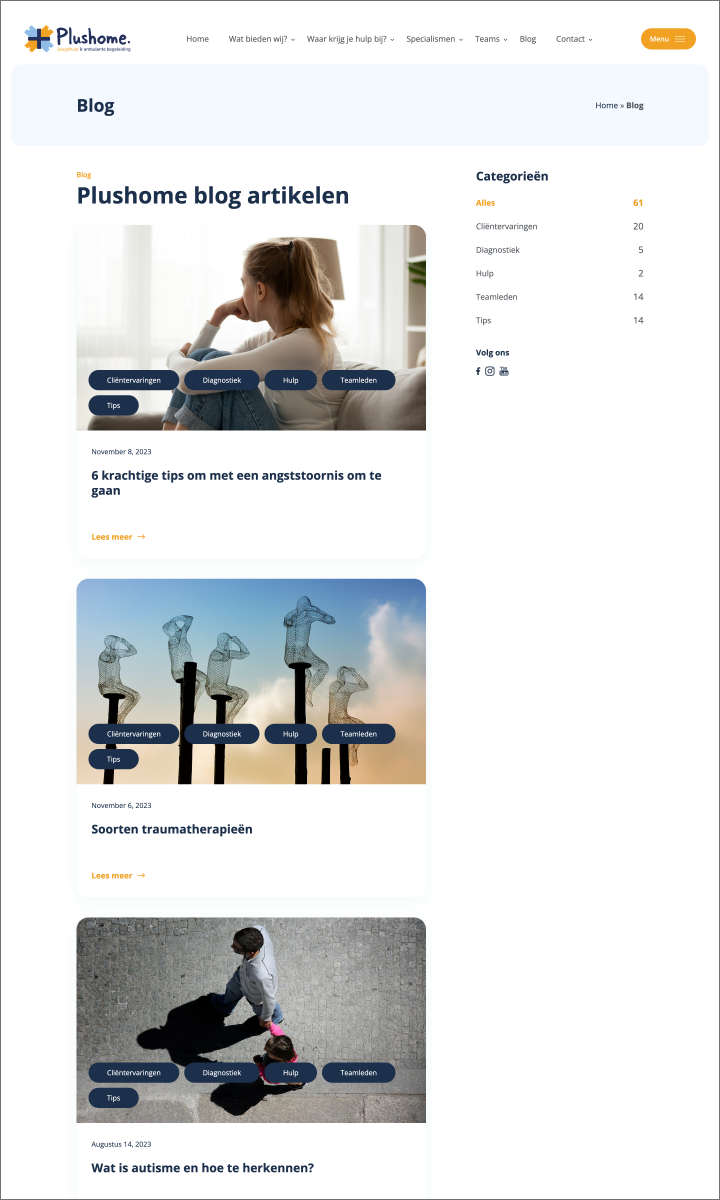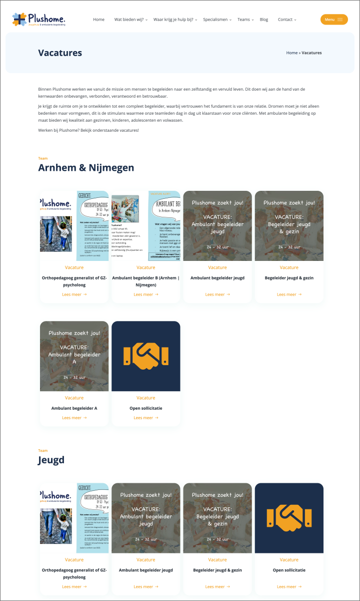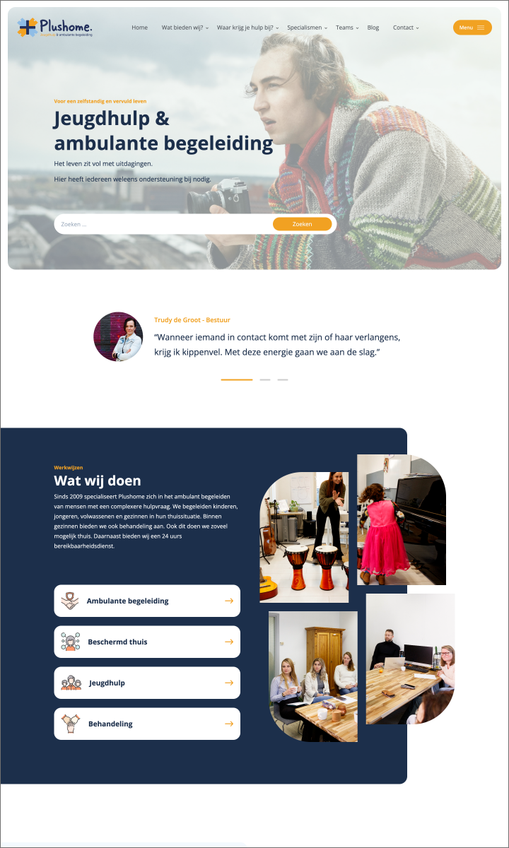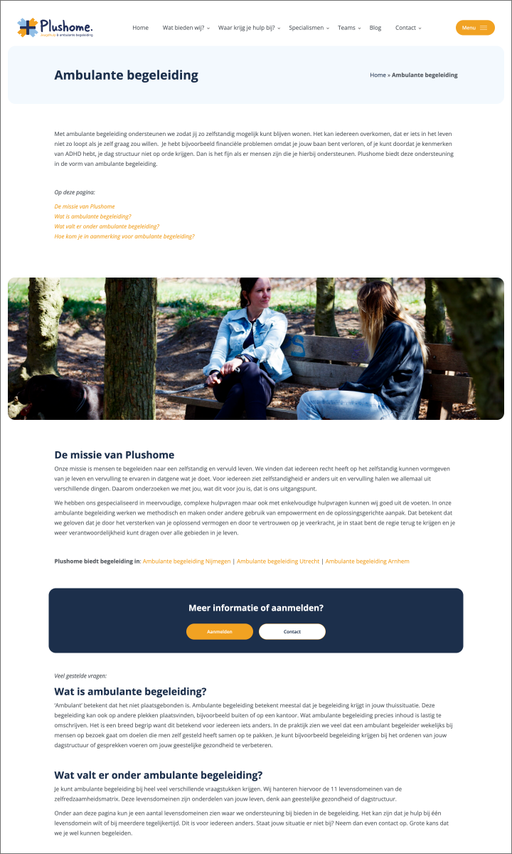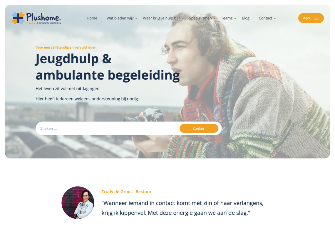 Plushome specialiseert zich in het ambulant begeleiden van mensen met een complexere hulpvraag. Ze bieden hulp aan iedereen die het nodig heeft. Deze toewijding komt tot uiting in de functionele website die wij hebben mochten realiseren.