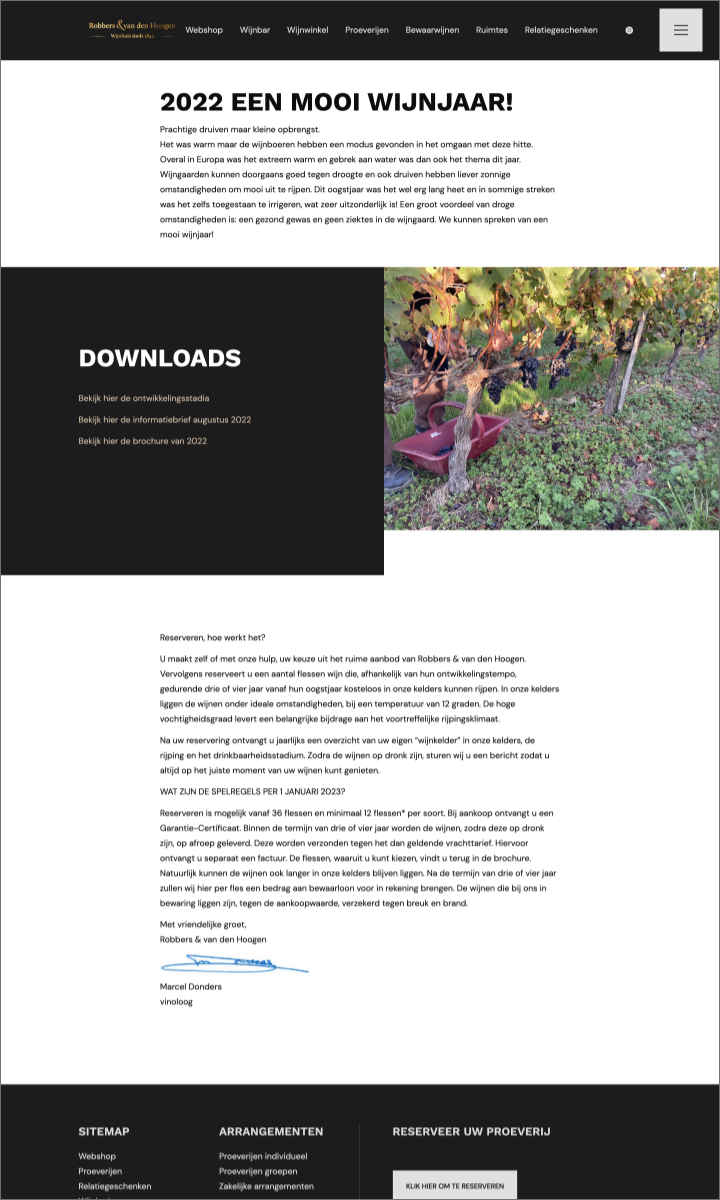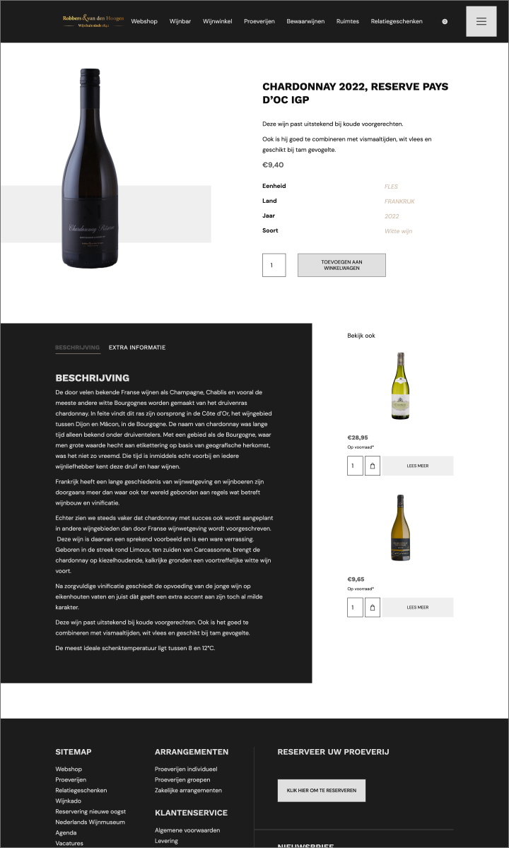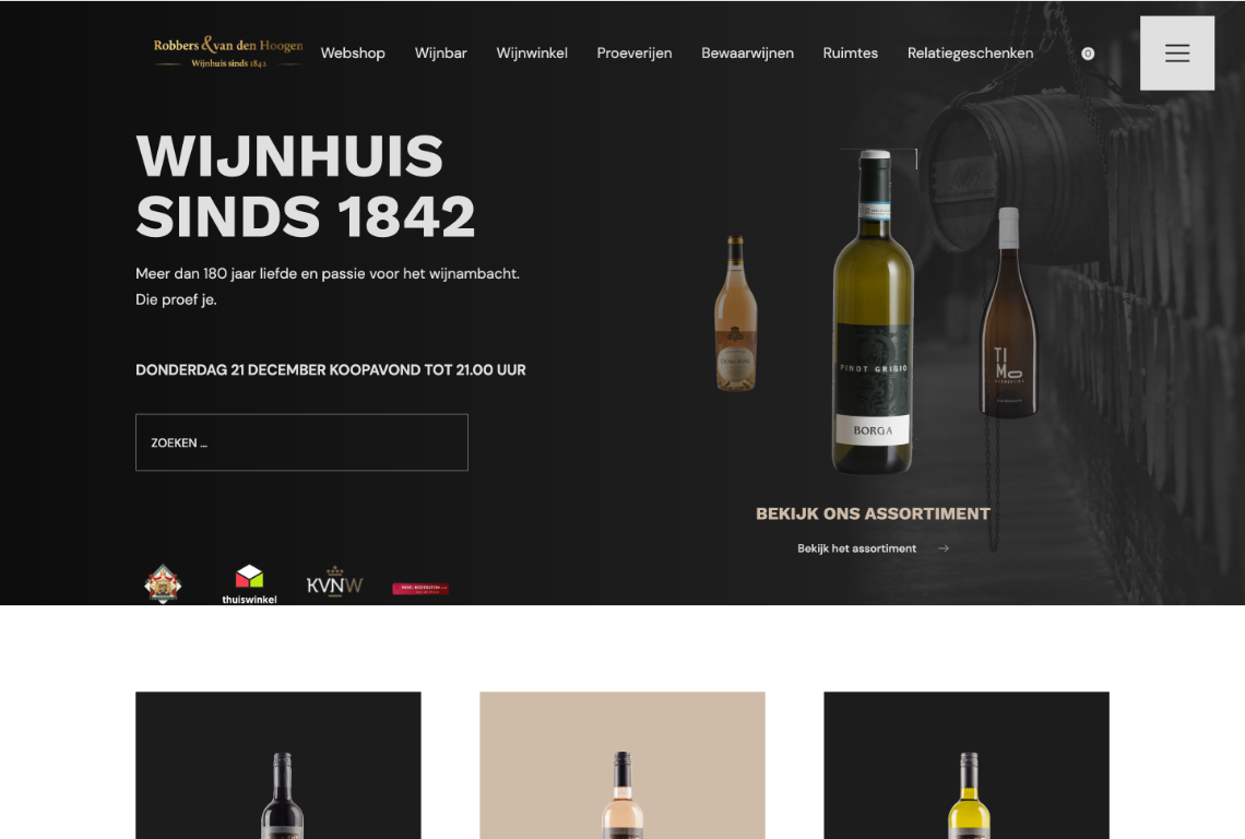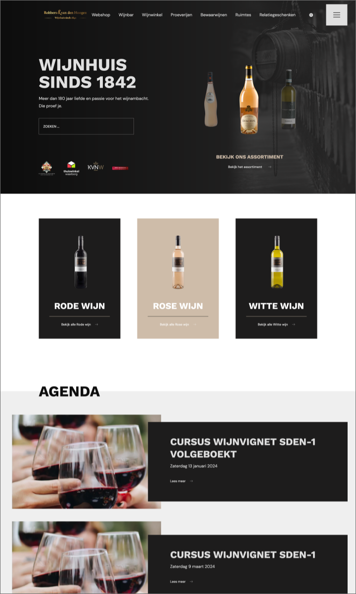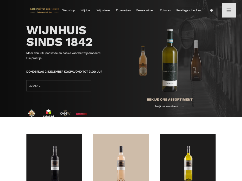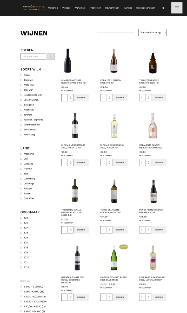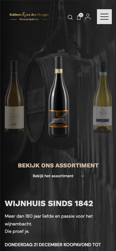 Wijnhuis Robbers & van den Hoogen, dé absolute autoriteit in wijnland. Een rijke traditie, verpakt in een eigentijdse bedrijfsidentiteit. Het is met trots dat BOOOM een online podium heeft gecreëerd voor dit vooraanstaande wijnhuis, met een op maat gemaakte webshop. Ook interesse in een webshop?