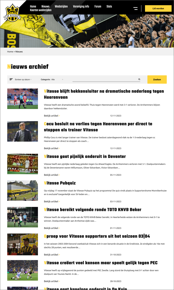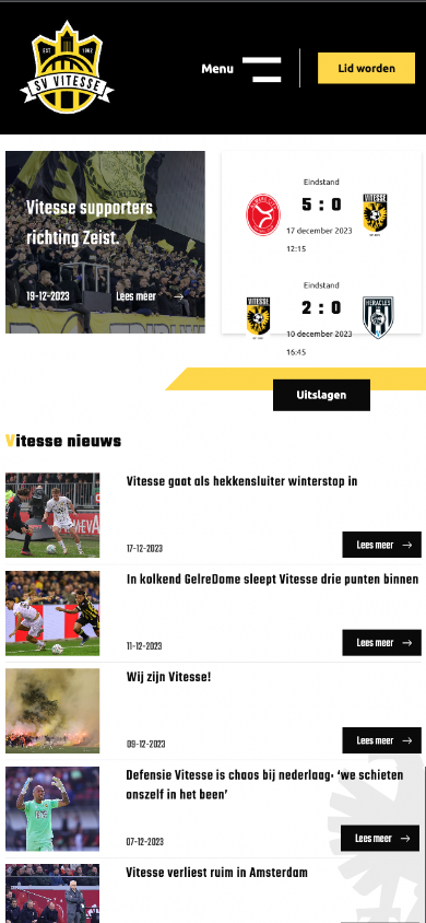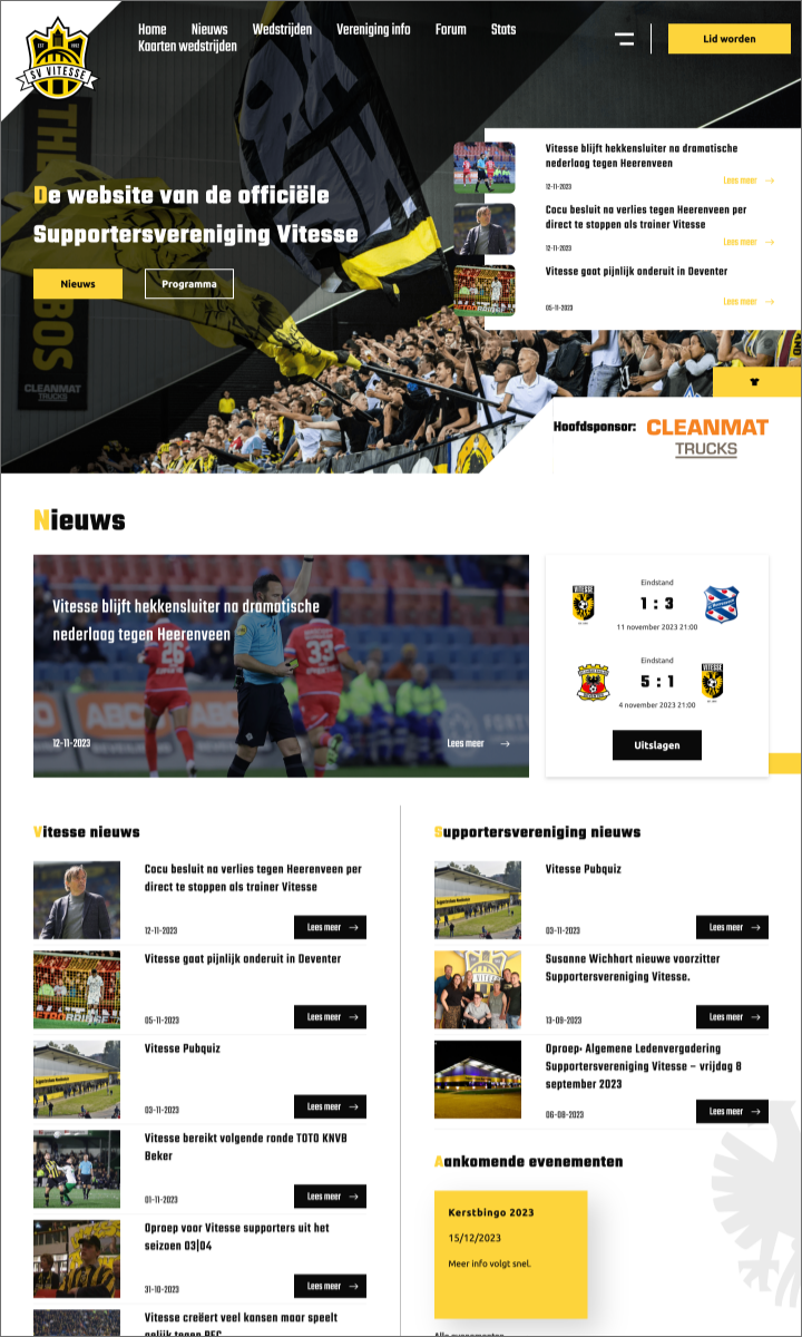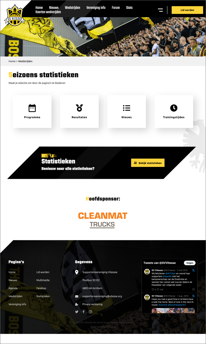 We mochten een nieuwe website ontwikkelen voor de supportersvereniging van Vitesse. Het allerlaatste nieuws over de club, transfers, voorbeschouwingen wordt automatisch ingeladen vanuit de KNVB database.