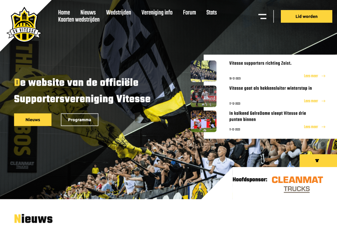 We mochten een nieuwe website ontwikkelen voor de supportersvereniging van Vitesse. Het allerlaatste nieuws over de club, transfers, voorbeschouwingen wordt automatisch ingeladen vanuit de KNVB database.