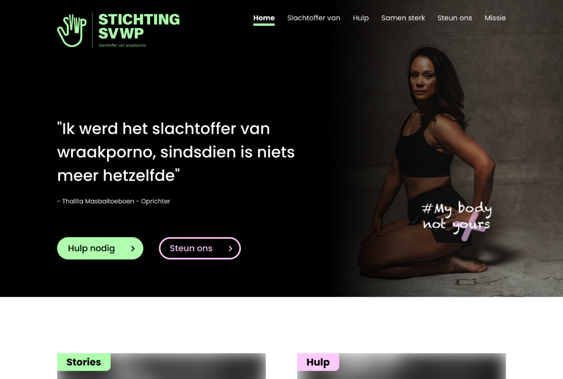 Sinds Thalita Masbaitoeboen slachtoffer werd van wraakporno was niets meer hetzelfde. Bovendien kwam ze erachter dat het lastig is om de juiste hulp te krijgen. Ze richtte Stichting SVWP op, om anderen zoals haar naar de juiste hulpinstanties te begeleiden. Wij mochten de website voor dit belangrijke onderwerp realiseren met een mooie conversational user interface.